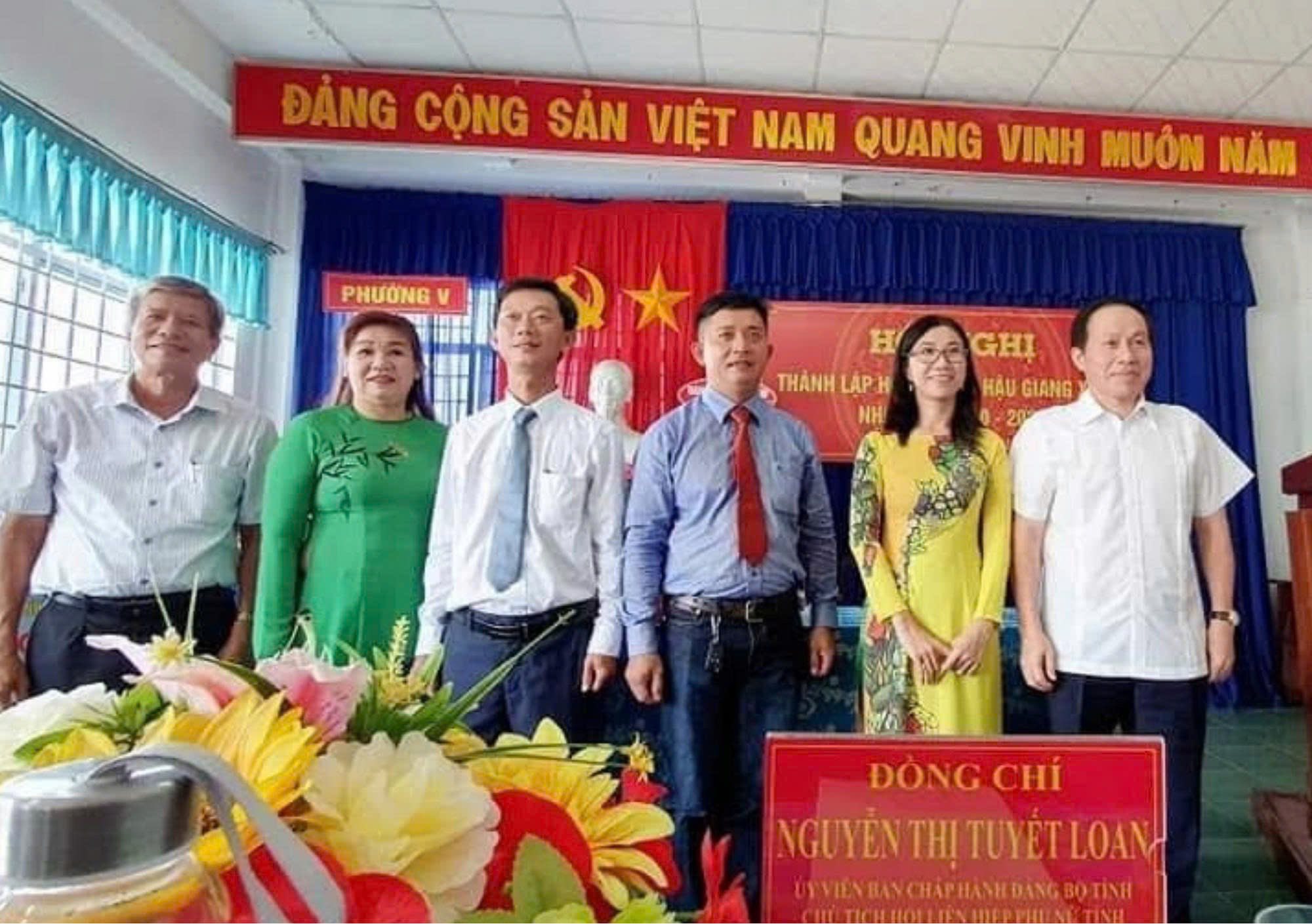 Lãnh đạo và đại biểu chụp ảnh lưu niệm tại một sự kiện tại Hậu Giang, ghi dấu những hoạt động gắn kết giữa chính quyền và cơ sở.